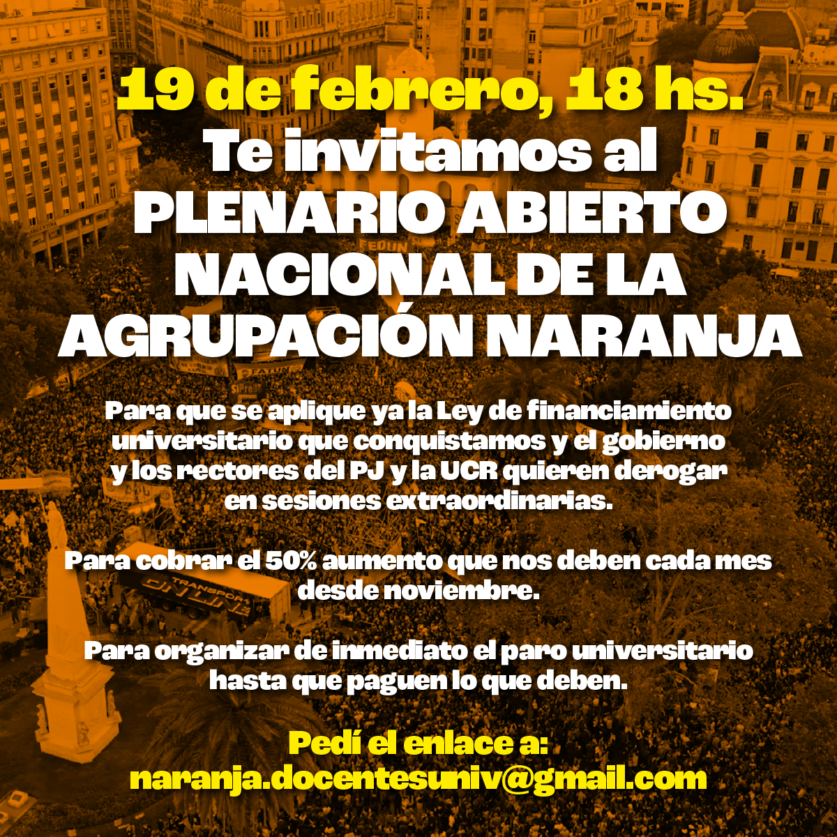 El 19 de febrero a las 18 hs, te invitamos al Plenario nacional abierto de la Agrupación Naranja